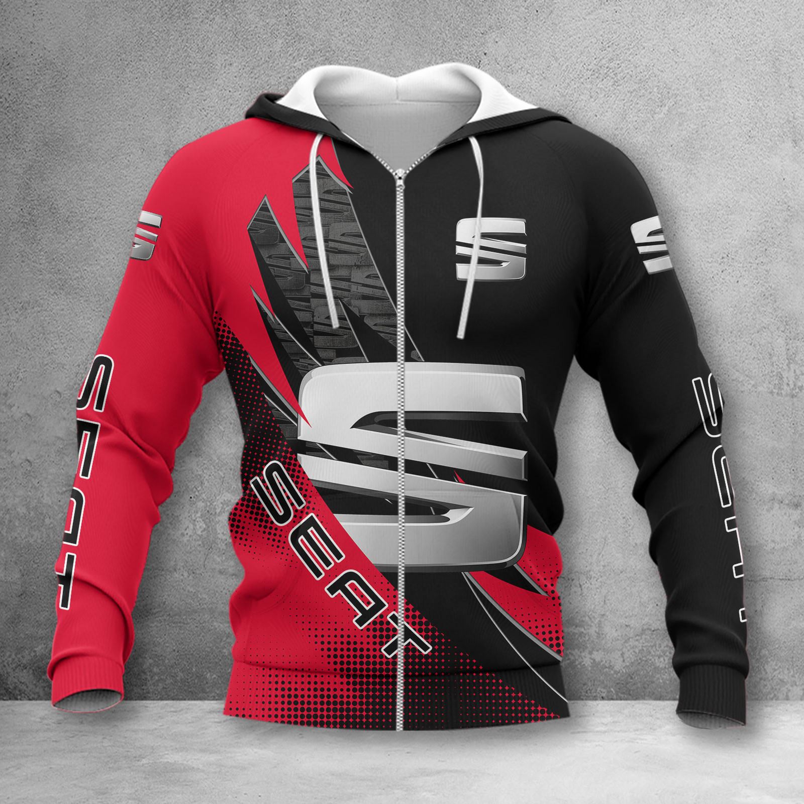 - Jeder Kapuzenpullover wird individuell für Sie bedruckt, zugeschnitten und genäht, wenn Sie Ihre Bestellung aufgeben. Aufgrund der individuellen Beschaffenheit des Produktionsprozesses kann es zu kleinen Unterschieden im Design der Nähte und/oder Ärmel kommen.